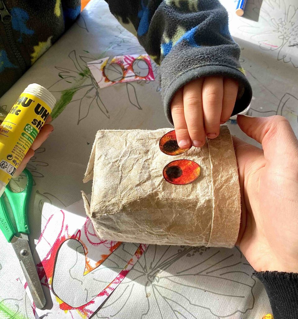 Ich habe den Karton deshalb ein wenig vorbereitet und danach meinem Sohn gegeben, damit er ebenfalls „mithelfen“ konnte.